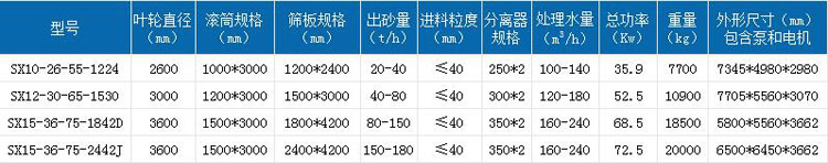 组成:滚筒洗砂机,洗砂轮、储水槽、抽水槽、反水装置、分离回收装置、脱水装置、减速机、水泵、电机。