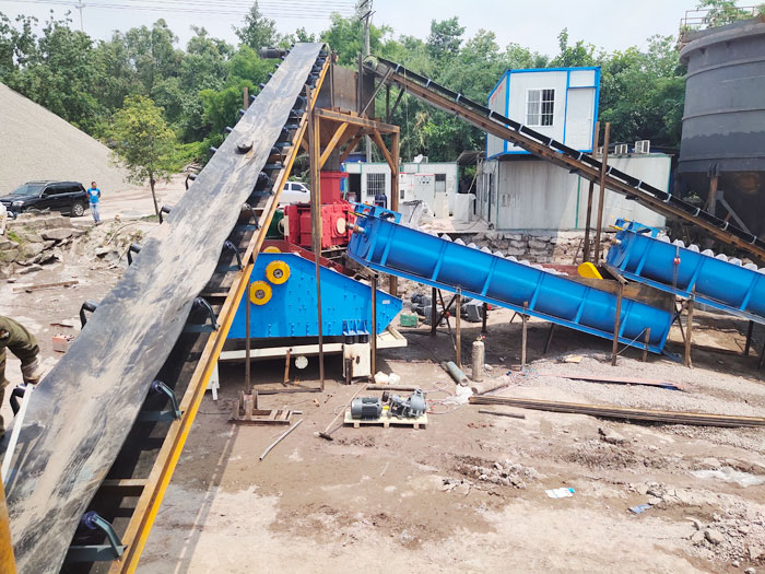 二、筛分环节:筛分环节可以利用筛分组,设备选择上很多业务员已经驾轻就熟,关键是要结合场地进行合理布局。让回料、成品皮带能够gh的放置、工作。