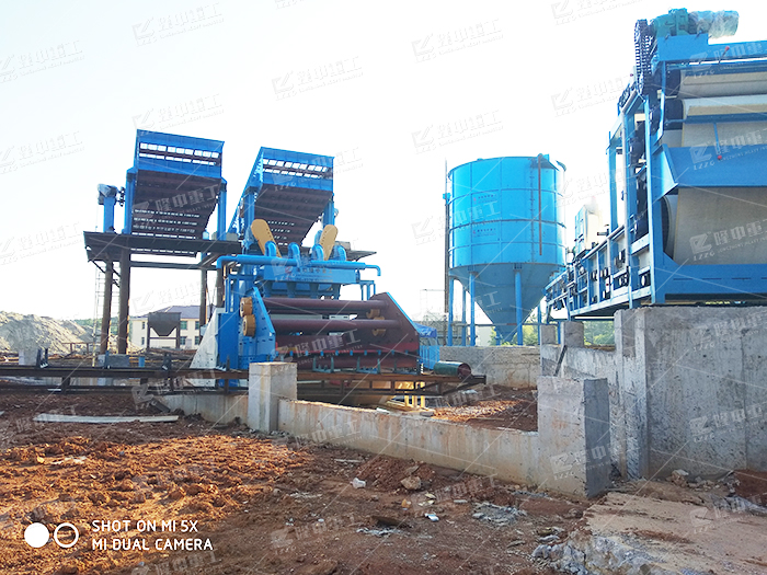 选用洗沙机进行洗选脱水,水力旋流器分选,作业是为了除去高岭土细砂(细粒石英、长石等杂质),一般采用θ75、θ50、θ25等不同直径的水力旋流器进行多次分选。