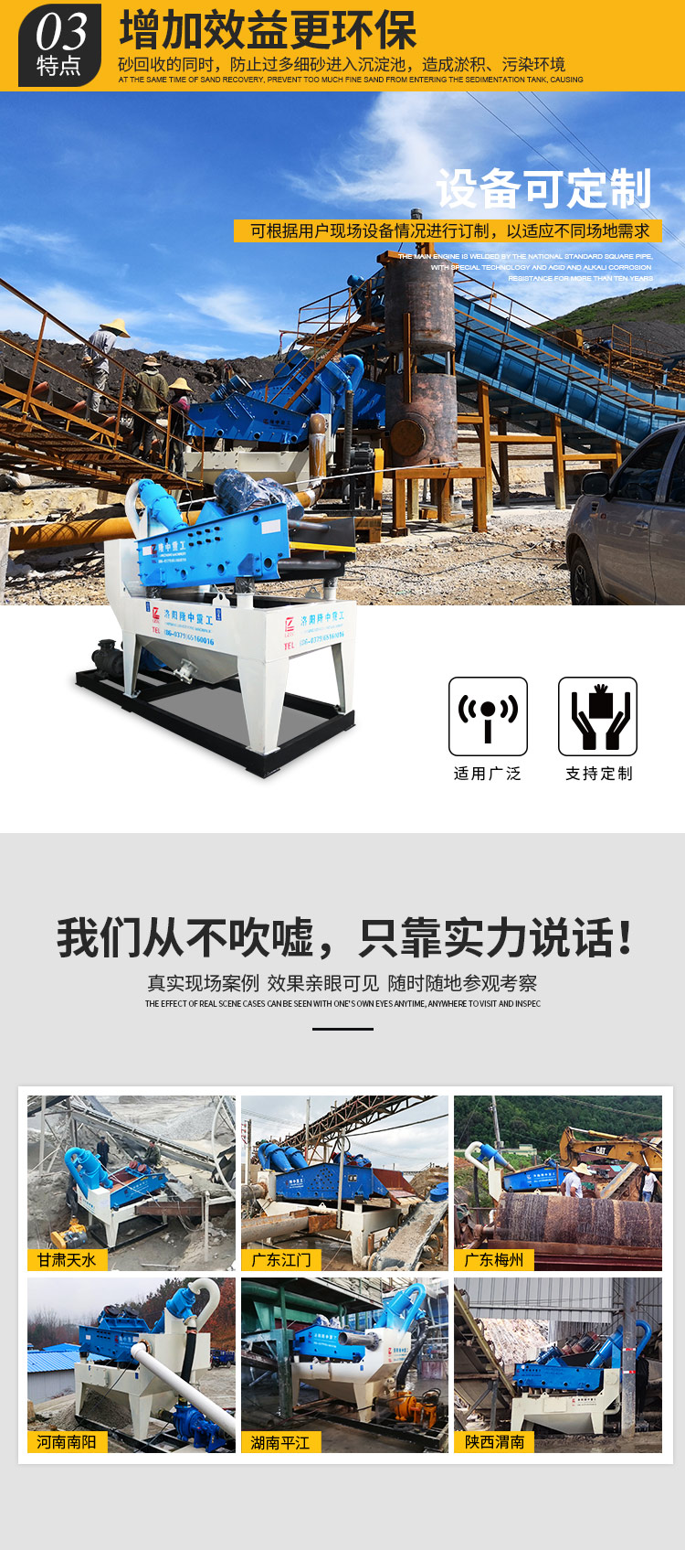 应用范围:该设备已经广泛应用于采砂场,矿场,工地,高速公路,道桥建设,混凝土搅拌站,水利水电,化工等多种行业。
