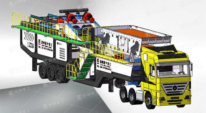 结构组成:移动挂车底盘、筛分装置、水洗装置、脱水回收装置,泵及电机组件,输送皮带、电控及液压系统等。
