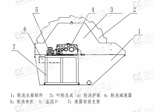 清洗原理:在洗涤槽中加水形成强水流,及时将杂质及比重小的异物带走,并从溢出口洗槽排出,完成清洗作用。干净的砂石由叶片带走,后砂石从旋转的叶轮倒入出料槽,完成砂石的清洗作业。