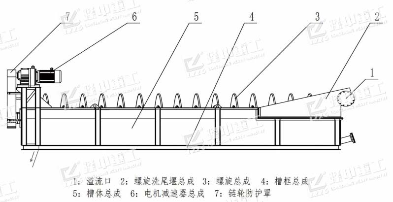 3、螺旋洗砂机具有可调式溢流堰板,确保了细粒产品的稳定性,选洗效率高。