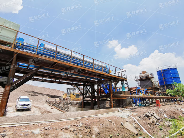 **,砂子污水处理设备在工作运行中,悬浮液先从止推板上的进料孔进入各滤室,然后压紧装置推动压紧板,将所有滤板和滤框压紧在机架中,达到额定压紧力后,即可进行过滤。固体颗粒被过滤介质截留在滤室内,滤液则透过介质,由出液孔排出机外。同时由于砂子污水处理设备的研发是在传统压滤机的技术基础上,吸收了国内外同类产品先进技术设计而成,所以设备具有十分优良的分离效果。
