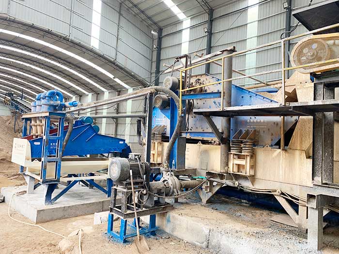 洗砂生产线。脱水型细砂回收机通常与洗砂机结合使用,构成“洗砂-脱水-回收”的洗沙系统,在砂石骨料价格日益上涨的当下,通过脱水型细砂回收机对产线的细沙进行回收,有效可以提升洗沙生产线的砂石质量及产量,帮助客户提升产线实际收益!同时,通过脱水型细砂回收机回收细沙,还可以有效减轻沙场和矿山企业沉淀池清淤的压力和减小沉淀池的占地面积需求,为后期环 保设备减轻压力,打造环 保、节能减排的绿色选矿企业。
