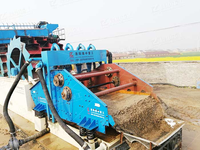 而细沙回收机通过渣浆泵能够将砂水混合物输送至旋流器,使离心分级浓缩的细砂经过沉砂嘴提供给振动筛,然后经由振动筛脱水后实现细砂和水的有效分离,使少量的细砂、泥等经由返料箱再重新回到清洗槽。当清洗槽液面过高的时候,经出料口排出,从而完成对细砂的清洗、脱水和分级三种功能。