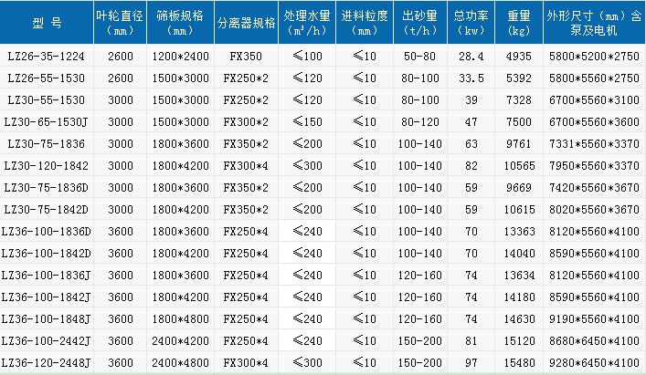 洗沙细砂回收一体机主要分为洗砂部位和细砂回收部位;,洗砂部位和一般的轮式洗砂机功能相同, 用于水洗砂、脱水、脱泥,而回收部位可根据客户的需求组合,需要细砂回收的话可以连接一 般的细砂回收系统,需要细砂脱水回收的话可以连接脱水型细沙回收机,需要不同的出砂效果的话也可以配置多层脱水筛。详细这款洗沙细砂回收一体机型号参数表如下: